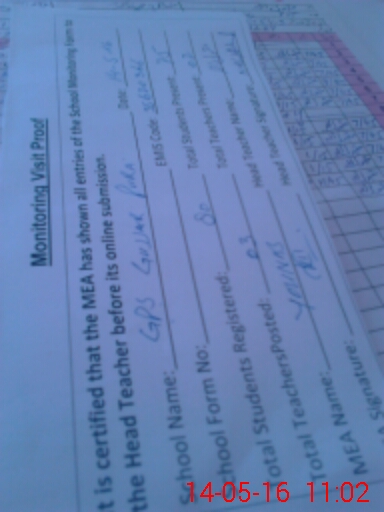 | Attendance Register | Head Teacher | MEA with School | Visit Proof |