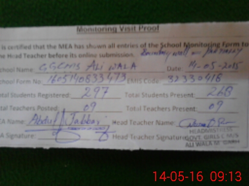 | EMIS Code: 32330418 | Name of School: GGCMS ALI WALA | |||