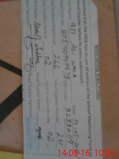 | EMIS Code: 32330119 | Name of School: GPS ALI WALA | |||