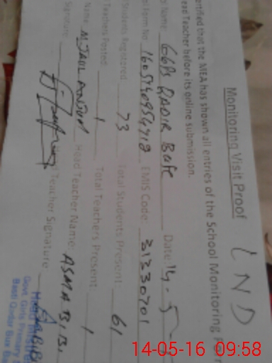 | Certified that this School was Inspected by the Undersigned MEA/DMO Today and the Information Stated Above is as Per Record. | |||||