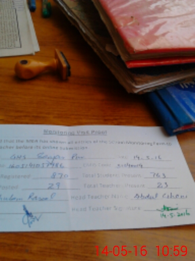 | Attendance Register | Head Teacher | MEA with School | Visit Proof |