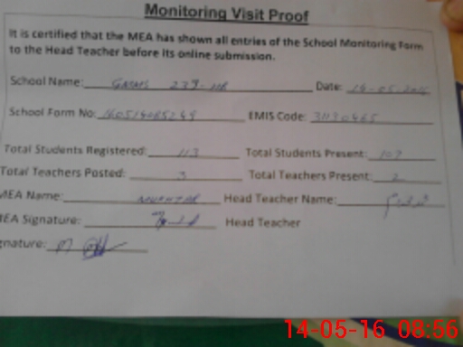 | Attendance Register | Head Teacher | MEA with School | Visit Proof |