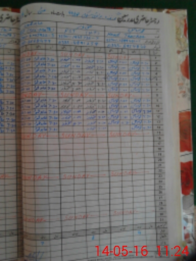 | CNIC | Full Name | Designation | R/C | Absence During Last Calender Month |