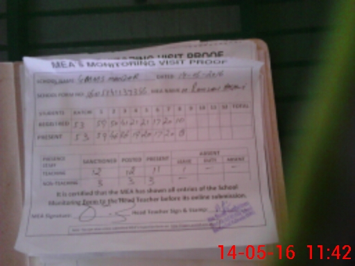 | Attendance Register | Head Teacher | MEA with School | Visit Proof |