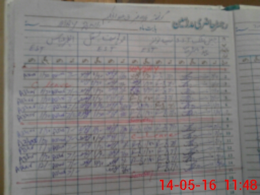 | CNIC | Full Name | Designation | R/C | Absence During Last Calender Month |