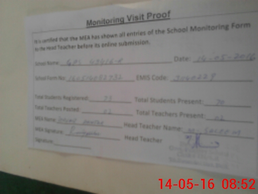 | Attendance Register | Head Teacher | MEA with School | Visit Proof |