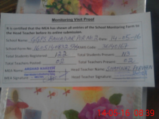 | EMIS Code: 36140167 | Name of School: GGPS BAHADAR PUR NO. 2 JALALPUR PIRWALA | |||