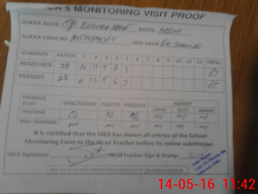 | Attendance Register | Head Teacher | MEA with School | Visit Proof |