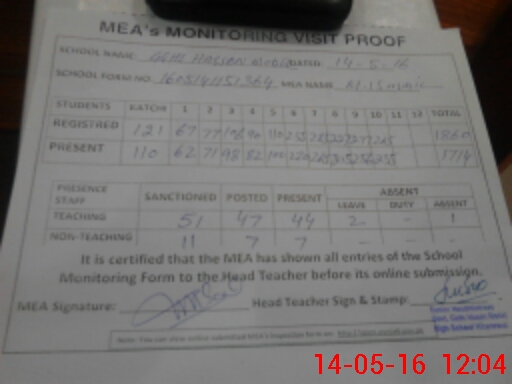 | Attendance Register | Head Teacher | MEA with School | Visit Proof |