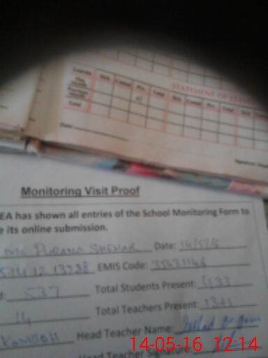 | Attendance Register | Head Teacher | MEA with School | Visit Proof |