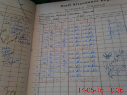 | CNIC | Full Name | Designation | R/C | Absence During Last Calender Month |