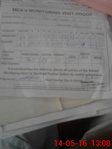 | 1 | 20/04/2016 | H M GHS SHAM KOT | ||