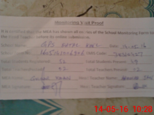 | EMIS Code: 38310427 | Name of School: GPS QATAL KHEL | |||