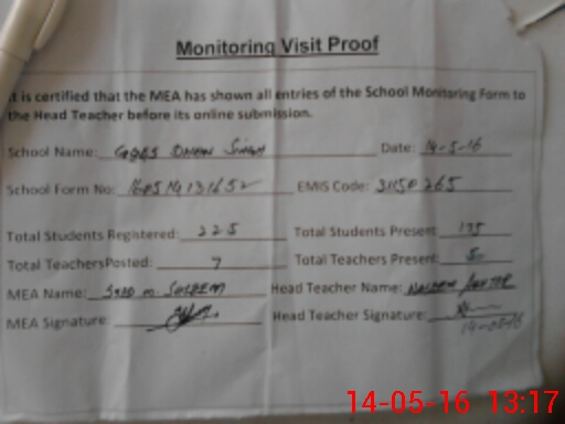 | Certified that this School was Inspected by the Undersigned MEA/DMO Today and the Information Stated Above is as Per Record. | |||||