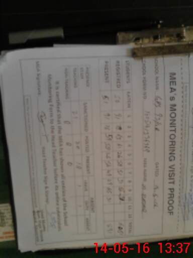 | Attendance Register | Head Teacher | MEA with School | Visit Proof |