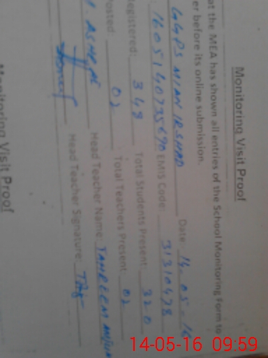 | EMIS Code: 31310478 | Name of School: GGPS MIAN IRSHAD AHMAD | |||