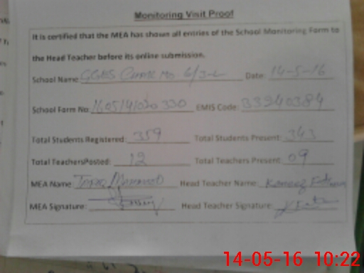 | Certified that this School was Inspected by the Undersigned MEA/DMO Today and the Information Stated Above is as Per Record. | |||||