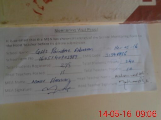 | EMIS Code: 31340016 | Name of School: GHS BINDORE ABBASIAN | |||