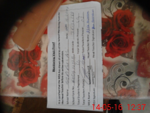 | Attendance Register | Head Teacher | MEA with School | Visit Proof |