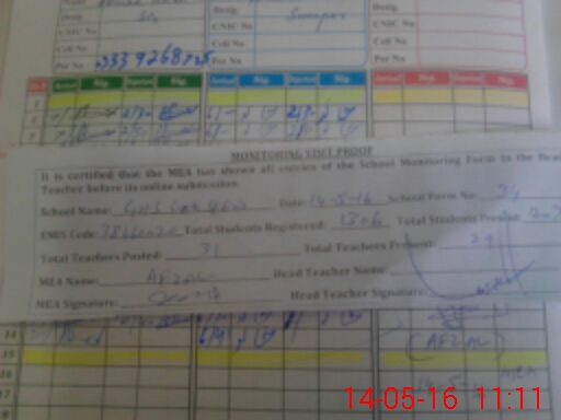 | Certified that this School was Inspected by the Undersigned MEA/DMO Today and the Information Stated Above is as Per Record. | |||||