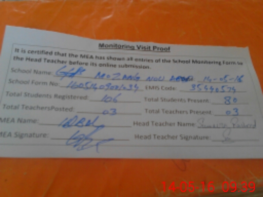 | Certified that this School was Inspected by the Undersigned MEA/DMO Today and the Information Stated Above is as Per Record. | |||||