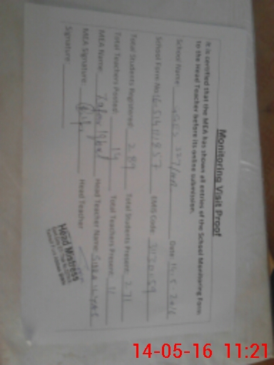 | Certified that this School was Inspected by the Undersigned MEA/DMO Today and the Information Stated Above is as Per Record. | |||||