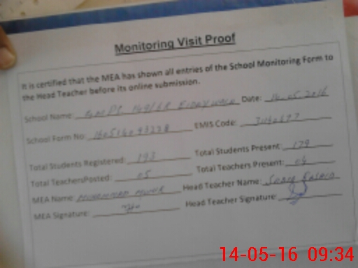 | Attendance Register | Head Teacher | MEA with School | Visit Proof |