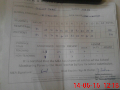 | Attendance Register | Head Teacher | MEA with School | Visit Proof |