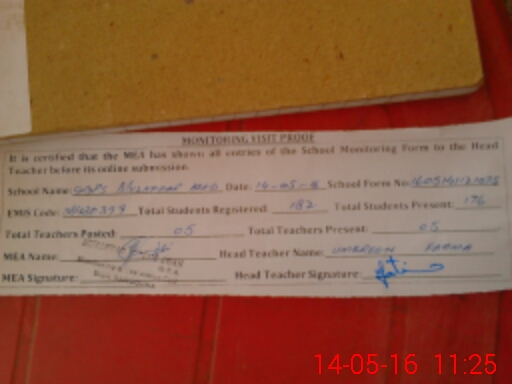 | Attendance Register | Head Teacher | MEA with School | Visit Proof |