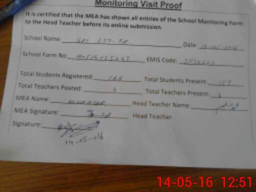 | Certified that this School was Inspected by the Undersigned MEA/DMO Today and the Information Stated Above is as Per Record. | |||||
