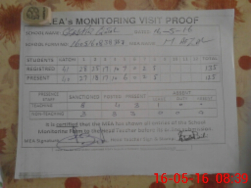 | Attendance Register | Head Teacher | MEA with School | Visit Proof |