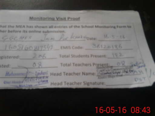 | Certified that this School was Inspected by the Undersigned MEA/DMO Today and the Information Stated Above is as Per Record. | |||||