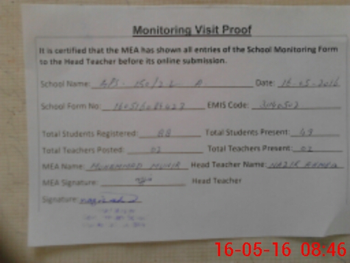 | Certified that this School was Inspected by the Undersigned MEA/DMO Today and the Information Stated Above is as Per Record. | |||||
