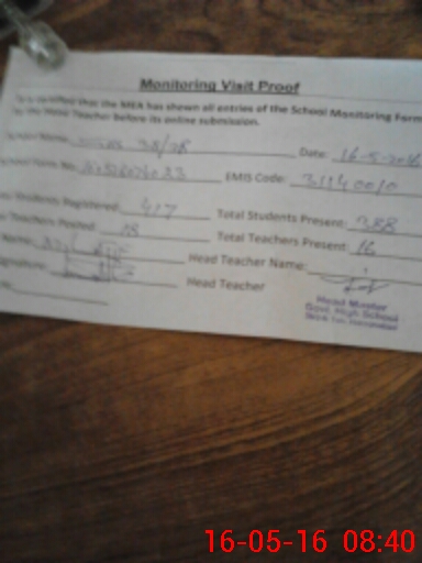 | Attendance Register | Head Teacher | MEA with School | Visit Proof |
