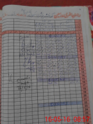 | Monitoring Date: 16-05-2016 | Start Time: 16-05-2016 08:47 AM | End Time: 16-05-2016 09:01 AM | Name of MEA: RI**** AH**** ZA**** (R**** | |