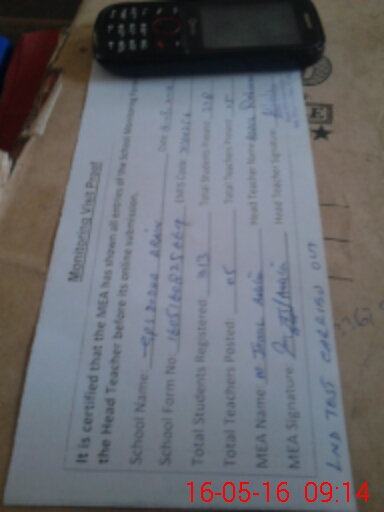 | Attendance Register | Head Teacher | MEA with School | Visit Proof |