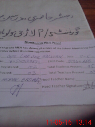 | Certified that this School was Inspected by the Undersigned MEA/DMO Today and the Information Stated Above is as Per Record. | |||||