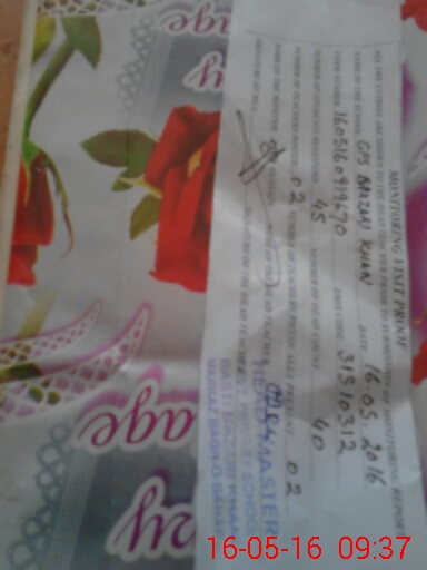 | Monitoring Date: 16-05-2016 | Start Time: 16-05-2016 09:19 AM | End Time: 16-05-2016 09:38 AM | Name of MEA: Za**** Hu**** | |