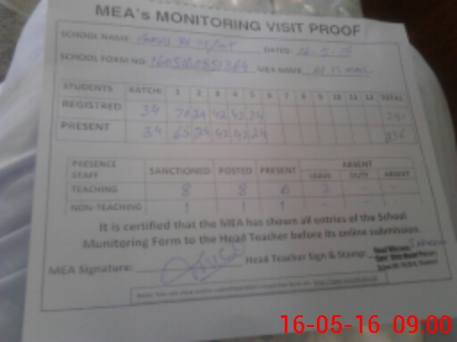 | Attendance Register | Head Teacher | MEA with School | Visit Proof |