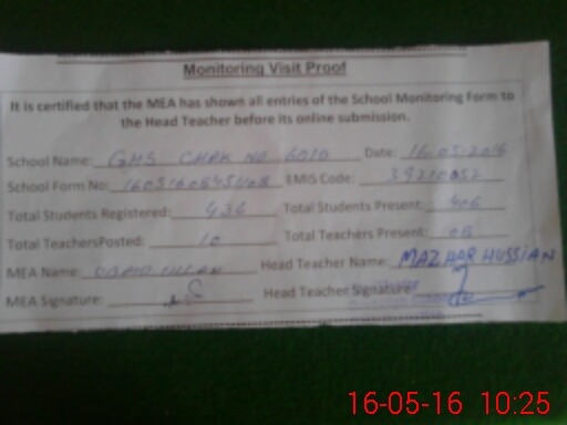 | EMIS Code: 39210052 | Name of School: GHS 60/D P/O CHAK BADIA | |||