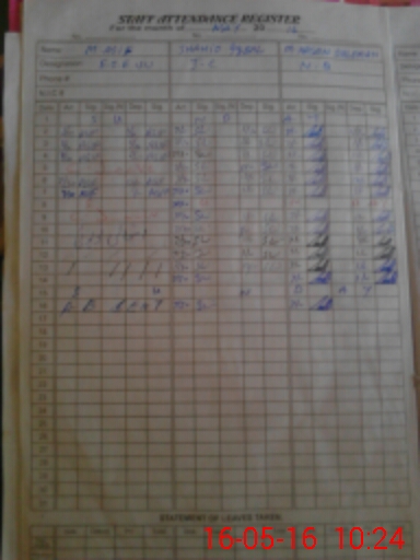 | CNIC | Full Name | Designation | R/C | Absence During Last Calender Month |