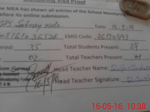 | Certified that this School was Inspected by the Undersigned MEA/DMO Today and the Information Stated Above is as Per Record. | |||||