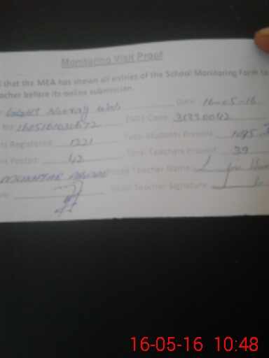 | Certified that this School was Inspected by the Undersigned MEA/DMO Today and the Information Stated Above is as Per Record. | |||||