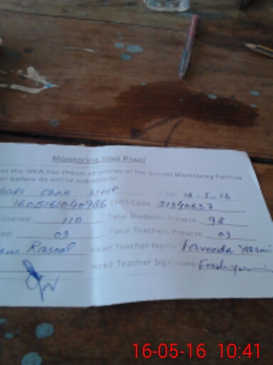 | Attendance Register | Head Teacher | MEA with School | Visit Proof |