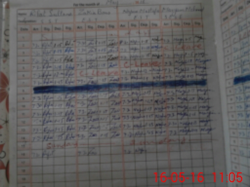 | CNIC | Full Name | Designation | R/C | Absence During Last Calender Month |