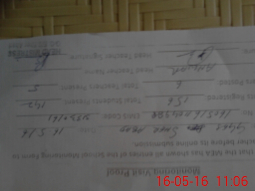 | Attendance Register | Head Teacher | MEA with School | Visit Proof |