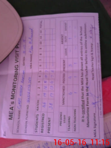 | Attendance Register | Head Teacher | MEA with School | Visit Proof |