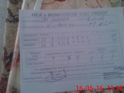 | Attendance Register | Head Teacher | MEA with School | Visit Proof |