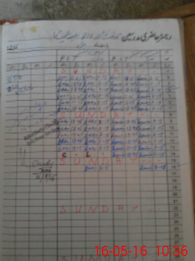 | CNIC | Full Name | Designation | R/C | Absence During Last Calender Month |
