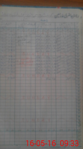 | CNIC | Full Name | Designation | R/C | Absence During Last Calender Month |